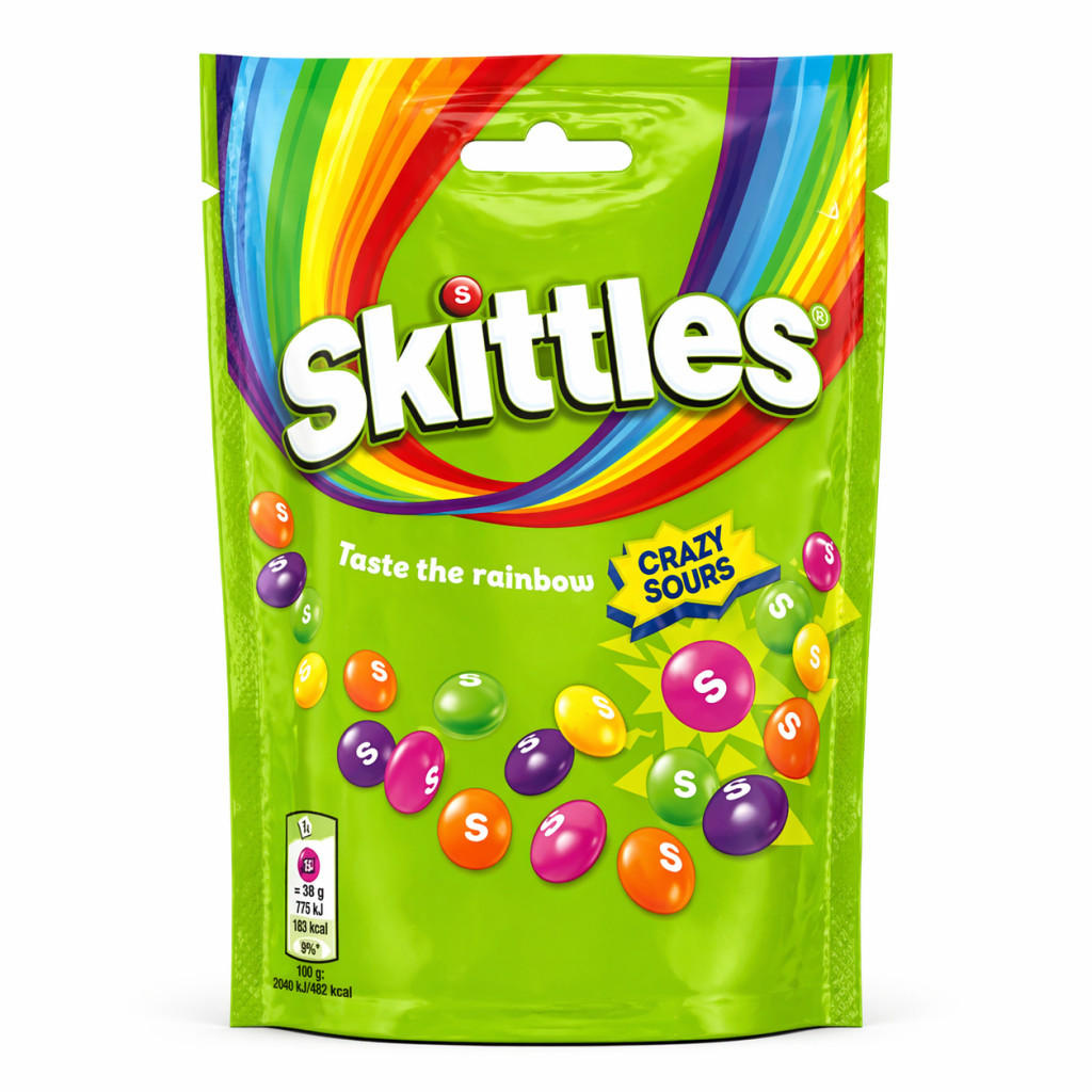 Savanykás, gyümölcsízű cukorkák roppanós cukorbevonattal. A Skittles Crazy Sours intenzív, frissítő ízélményt nyújt többféle gyümölcs kombinációjával – tökéletes nassoláshoz vagy megosztásra.